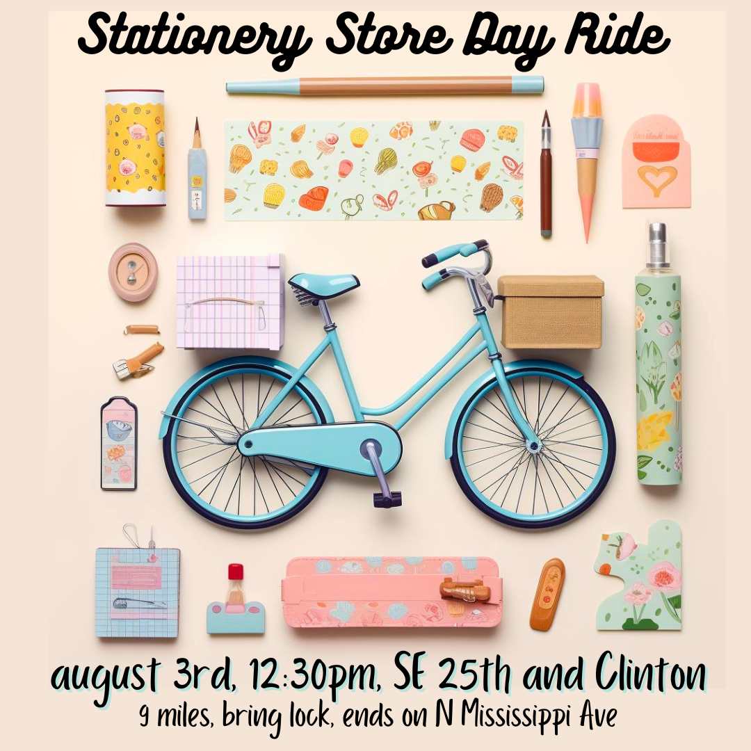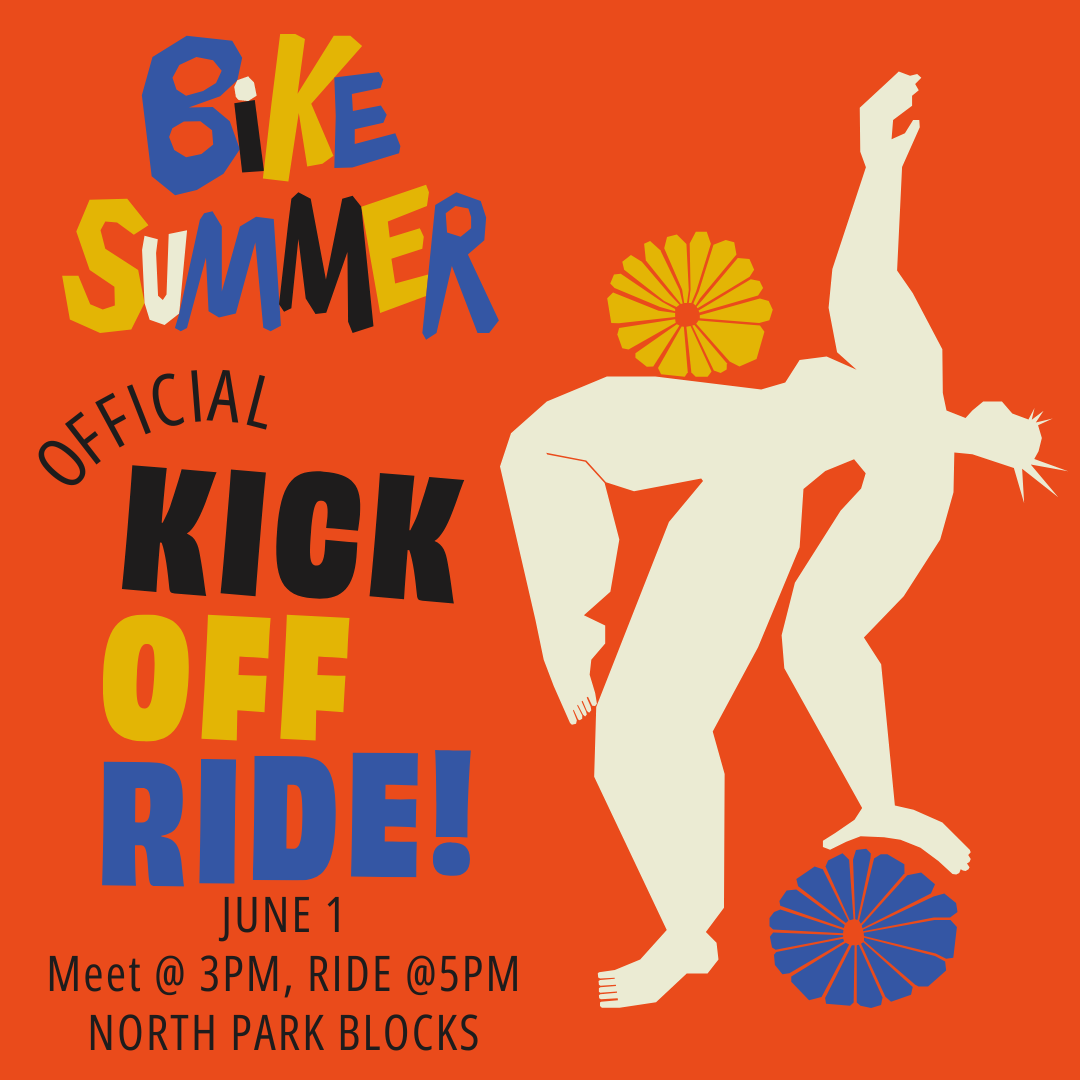 Ride with friends to the Kickoff Ride, all the way to NW Portland! Let's meet at 2:45+, ride at 3:30 to give folks time to do merch pickup if they need to. The ride is no-one left behind, and should take around 30 minutes +/-.