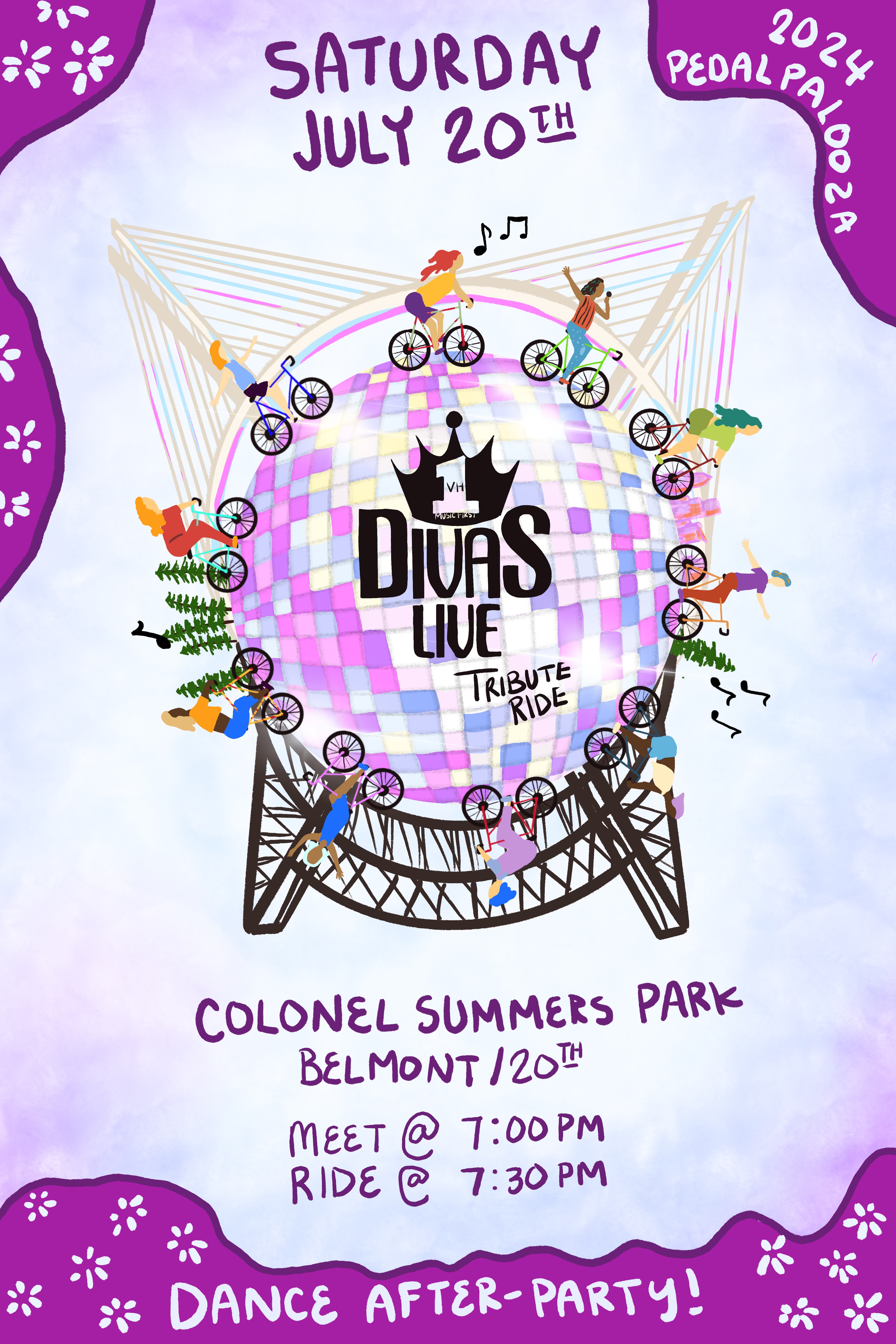 This is the official ride that kicks off the festivities every year. Volunteers will be selling Bike Summer merch from 3:00pm to 4:30pm. We will have a limited amount of pennants, stickers, tote bags, and special-edition posters for sale at the park, as well as shirts for you to try on before you buy online. If you ordered merch in the first pre-order, you need to pick it up by 4:45pm at the latest. No 2nd order pre-merch will be available for pick up. We'll also have Ride Leader pennants to give away - first come, first served. Volunteers on site will help affix pennants to bikes. Donations welcome! Ground Score Association will be onsite leading up to the event helping clean up the park and during the event to tell us about the work they do. Street Roots will be onsite handing out Rose City Resource Guides and their vendors will be selling newspapers. Street Books will be down there with their free library on wheels. All organizations will be riding with us. Please bring cash to donate to them. We are so grateful for all of the work they do. Kidical Mass is leading a feeder ride to the North Park Blocks from Laurelhurst Park at 3:30pm (details here: https://www.shift2bikes.org/calendar/event-18985). We'll make an effort to have kids ride at the front of the ride with the leaders. Show up early to catch the Drag Show at the Cart Blocks (770 W Burnside St), enjoy tacos and beverages at De Noche (422 NW 8th Ave), and discover gluten free phở at Butterfly Belly (323 NW Park Ave). GO SUPPORT THESE LOCAL BUSINESSES. Be ready to enjoy tunes leading up to Kickoff by DJ Lo and Portland Samba! Timeline: 3:00pm - Event starts, DJ Lo starts (ends at 4:30pm) 3:00pm - Drag show at the Cart Blocks (ends at 4:00pm) 4:30pm - Portland Samba starts (ends at 4:50pm) 4:30pm - Sales end at merch booth 4:45pm - Last pick up for pre-ordered items 5:00pm - Ride departs 6:00pm - Picnic and hang at Laurelhurst Park with DJs and Olive & Dingo entertaining us with bike-themed songs, books, and silly balloon creatures We depart at 5pm on-the-dot for a family-friendly cruise, lasting about an hour. You are encouraged to dress yourself and your bike up. If you're leading a ride this Bike Summer, consider promoting your event onsite with fliers, etc. See the full route for the ride here: https://ridewithgps.com/routes/46889905 Check our Instagram or Facebook pages for details (www.instagram.com/PedalpaloozaPDX). Please note: The Starlight Parade is happening downtown the same day. They will have most of downtown blocked off south of Burnside (see closure map here -> https://www.rosefestival.org/events/2024/starlightparade). Do not plan on driving downtown. Take public transportation if you are unable to bike down. Come closer to 3pm, as streets and bridges will start closing around 4pm. Broadway and Steel are your best bet for bridges into the city from the East side. As always, be courteous to pedestrians. Happy #BikeSummer, Portland!