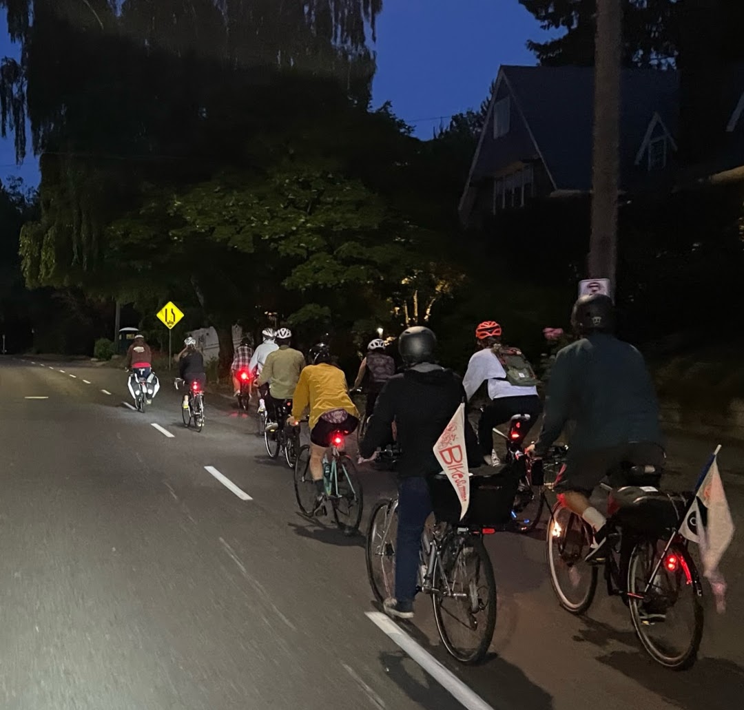 Perhaps the most joyous and the shortest of all rides, the Ding Ding Ride (usually led by the inimitable Armando Luna) celebrates bikes and their bells. Join fellow bike riders with a night cap and hat tip to Bike Summer/Pedalpalooza 2024 with three minutes of joy and bike bell ringing around Ladd Circle. (NOTE: Armando will not be available to lead and has given his blessing for me to lead the ride in his absence.) The ride is simple: Come to Ladd Circle in Southeast Portland, ride around three minutes while ringing your bell and then leave. The ride will begin promptly at 11:57 pm and end promptly at 12:00 am. This ride is a peaceful celebration of bike love. Please be kind to neighbors who may be resting, sleeping or getting ready for sleep. Please no loud music or noises…JUST acoustic BIKE BELLS! I want to also recognize that this expression of joy, love and fun is done on land that has been stolen from Native Peoples of this region through genocide, and that to this very day people around the world are suffering greatly under the same conditions because of the military-industrial complex of which cars and car infrastructure are products. So let us express our protest and love at once…And for three minutes. Free Palestine! And all oppressed Peoples of the world.