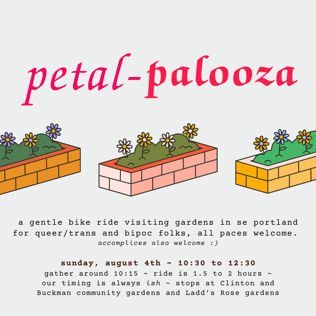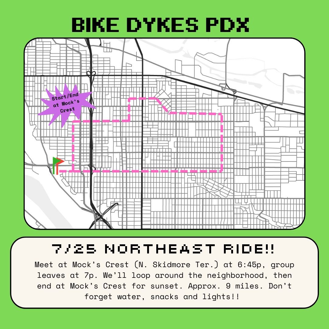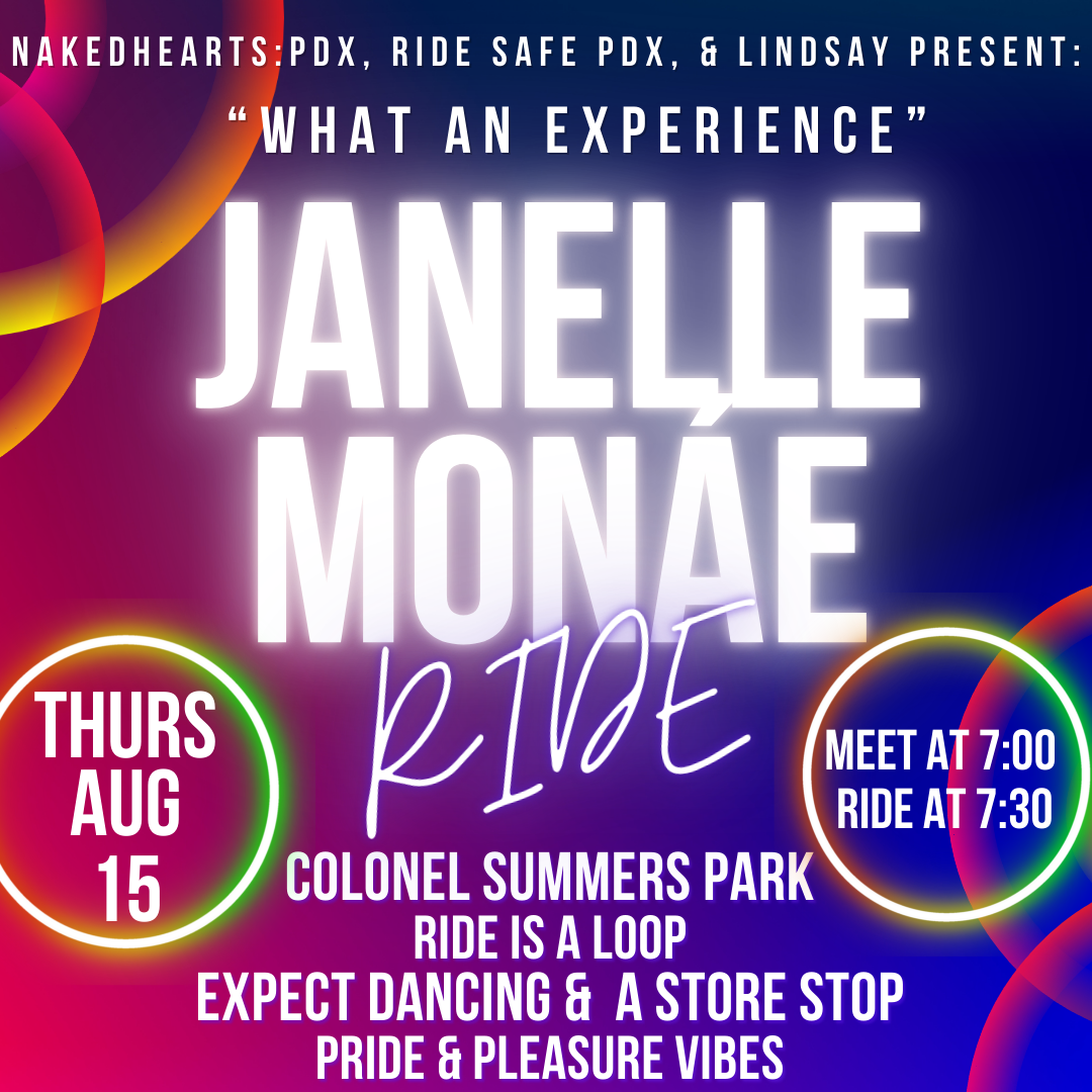 There have been so many great rides this summer. The Cone Ride. Portland Music Ride. Dress Like Your Bike. Solstice Ride/Skate. SharkNaito. And that's just the rides we've hosted! This ride is to celebrate the summer that was. Come dressed in an outfit inspired by your favorite ride from this summer! Or, just show up and have fun with your friends and community. This is *not* a naked ride. If you liked those rides, we invite you to get creative, but please make sure the private bits are covered appropriately. Meet at Peninsula Part by the gazebo starting at 6:30. Ride at 7ish. Route TBD, but we're aiming for about 10-11 miles. Ride will be a loop. ------------ Ride Safe PDX is a queer-led group that's working to build an inviting, inclusive, and welcoming bike community. We practice consent and follow the Shift2Bikes Code of Conduct. All wheels welcome, including e-bikes and skates. Find us on Instagram @RideSafePDX.