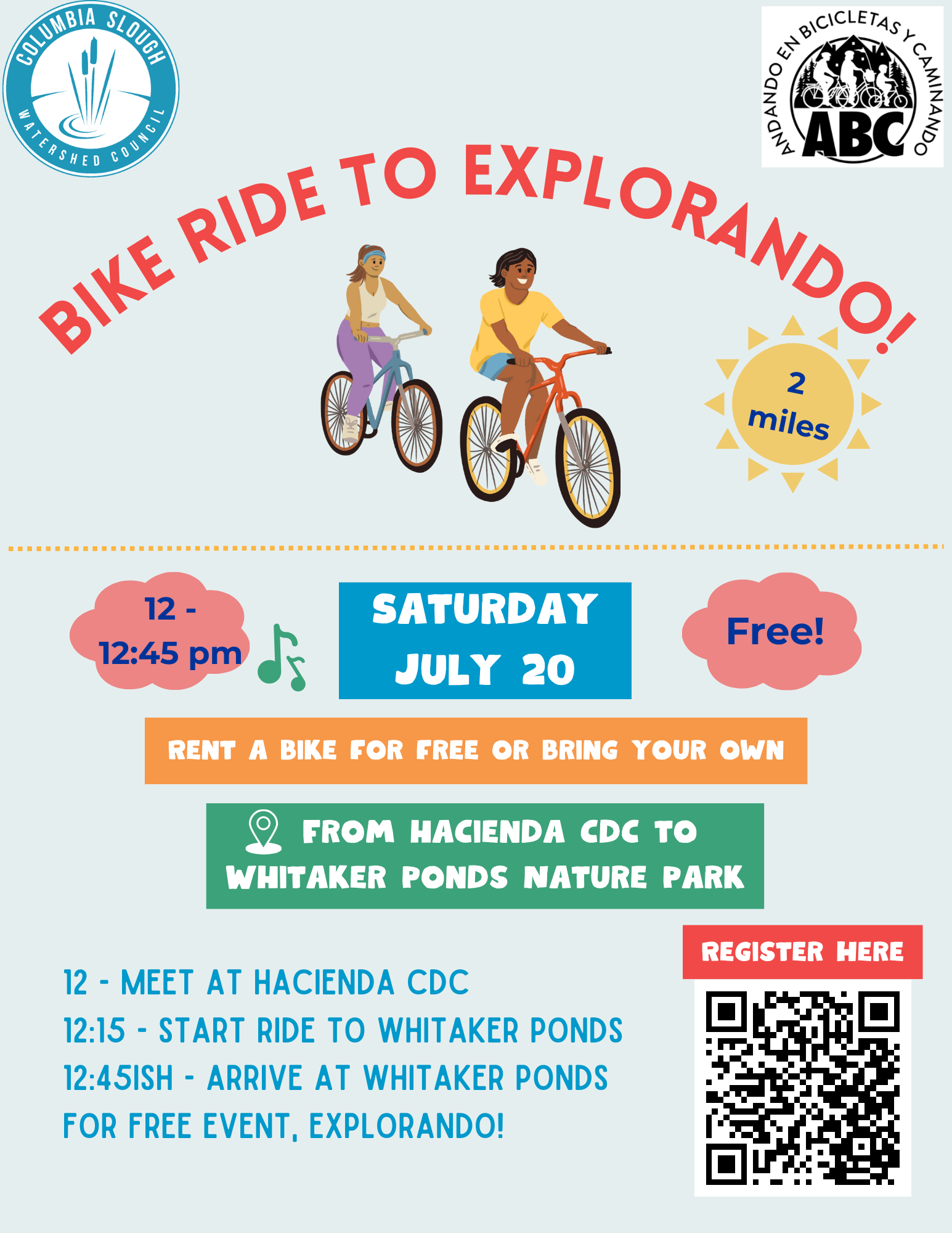 Meet at 6:15, ride around 7!