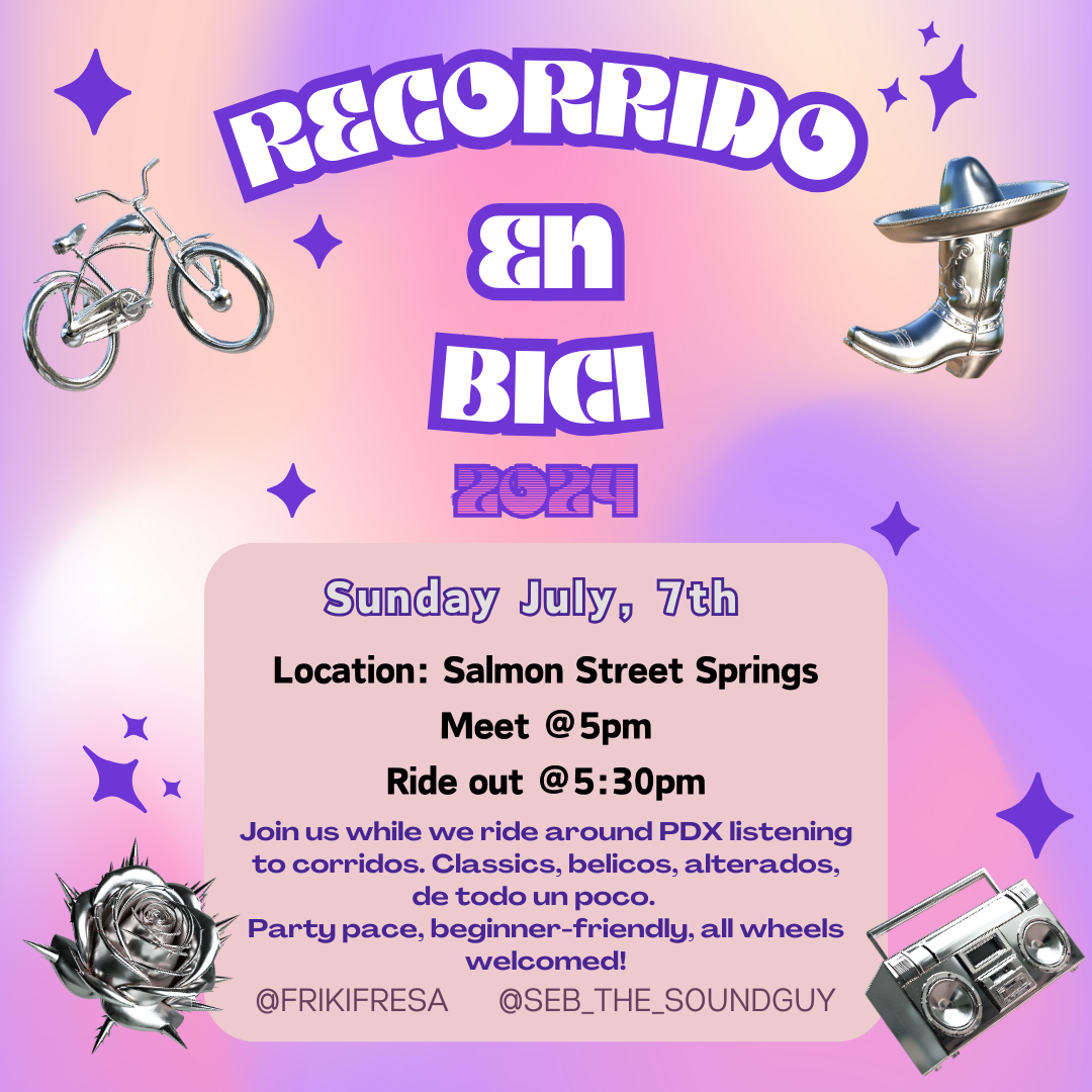 Come join us on a ride while we listen to some rock en español!!! We’ll be riding about 8 miles. Bring lights and water :) Feel free to bring your own speakers as well!! Bonus points if you rock your best rock en español band tee 😎 Beginner friendly, all wheels welcomed. Safe space, no hate tolerated. puro amor y paz✌🏽 ‼️Meeting time is 6pm and ride out is 6:30pm‼️