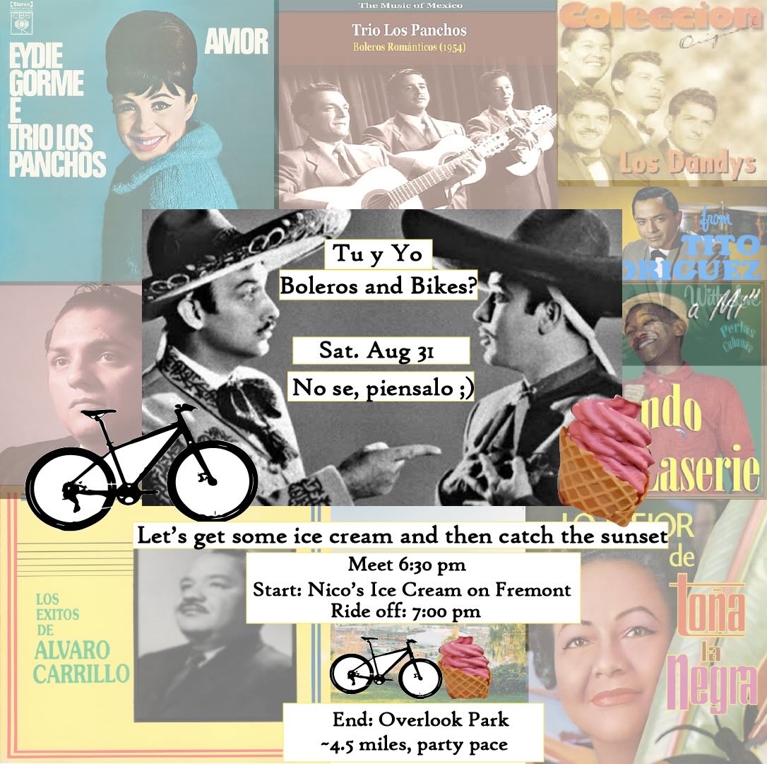 Ever just wanted to blast some boleros with the homies while riding into the sunset? We will finish at Mock's Crest with a picnic and a sunset. Bring some snax to share if you feeling generous <3 Come finish off Pedalpalooza with us <3 QUEER BIPOC LED-RIDE + SAFE SPACE. ALL WHEELS WELCOME. NO-DROP RIDE (no one is left behind). **Please arrive to Nico's ice cream on time so that we have enough time to order, enjoy, and roll out to Mock's Crest by 7p.