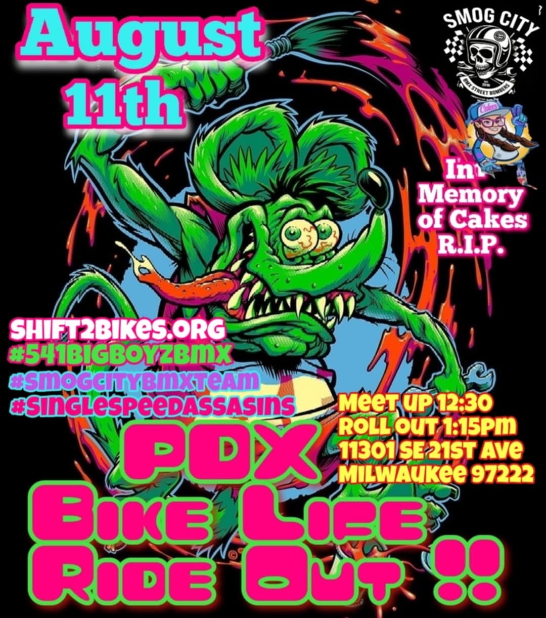 Come join us for the last day of Bike Summer(Pedalpalooza forever!) Let's go out with a bang! Calling ALL bikes , roller skaters, unicycles, trikes, low riders, tall bikes, swing bikes, e-bikes, bikes in costume, riders in costume, or just come in comfortable clothes. Let's have a spectacle through the streets of Portland! Bring your toys...Juggling accoutrements, tightropes, hula hoops, frisbees, glowy thing-a-ma-bobs, bubble machines for a park stop and the end spot. Wear your favorite Bike Summer Ride outfit, wear nothing at all and protest gas use or protest wearing clothes. Disappointed(I know I was) there wasn't a Clueless Ride, Dr. Who Ride, Star Wars vs. Star Trek Ride, Madonna vs. Lady Gaga Ride, Lingerie Ride? Dress the part and join the collective.This will be a safe ride, please only non-gas powered modes of mobility. Out of respect for all riders, flexing/showboating/trick riding will be allowed at the back of the pack only(just not through the group please). Respect and consent will be adhered to, as with the Shift Code of Conduct. If you are banned from other rides, you are banned from this ride. It's gonna be hot/warm that evening, so dress/undress accordingly, and bring hydration. There will be a store stop, fairly level route through SE, NE, and downtown. Corkers most welcomed and encouraged please and thank you. Also need some peeps to be safety monitors amongst the group/ride, if interested, contact Jameson through the email link. Use phone number for merge coordination.